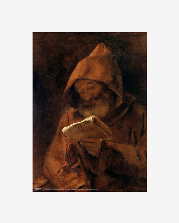 Luo kotiisi uutta tunnelmaa Lukeva munkki -julisteella! Teoskuva Rembrandt van Rijn'n maalauksesta Lukeva munkki on painettu laadukkaalle paperille Virossa.